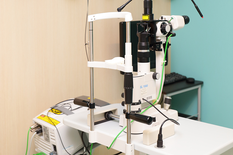 緑内障の治療では、原因などにあわせてレーザー虹彩切開術(LI)とレーザー線維柱帯形成術(SLT)を行っています。